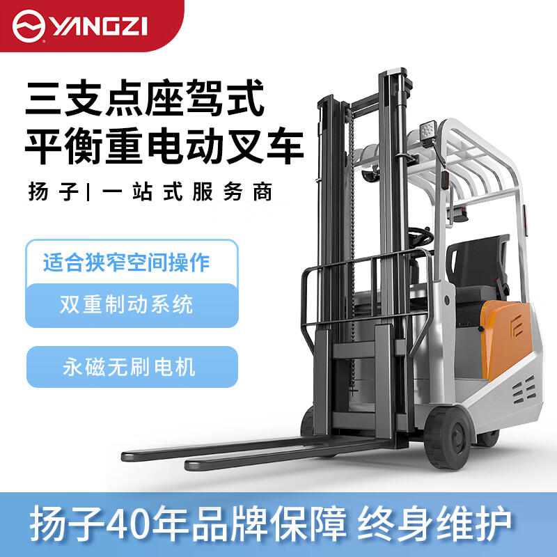 揚子三支點座駕式平衡重電動叉車CPD-A,動力強能耗低免維護低噪音,車身小巧/全車LED警示燈/制動雙保險